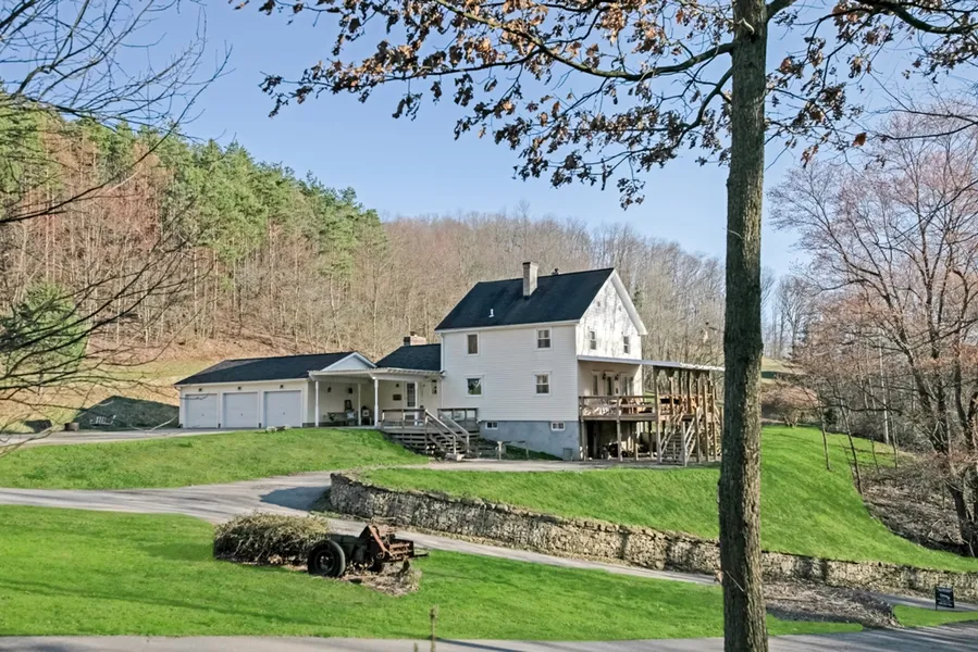 Dreaming of country living? It doesn't get any better than Sunny Hollow Dr. Totally renovated 3 BR, 2 full bath farmhouse on 43 Acre parcel of wooded land w/garden area, large barn, pond, shed & outbldg. Home features spacious Family Room w/fireplace, Picture perfect fully equipped eat in country kitchen, formal DR & LR w/decorative fireplace, full bath & laundry/mudroom on Main level. Wood floors thru-out, new large deck + covered patio, 3 car garage w/access to house via mud rm/laundry. New Septic in Feb, public water available, currently using well, paved driveway. Just bring your family & furnishings
