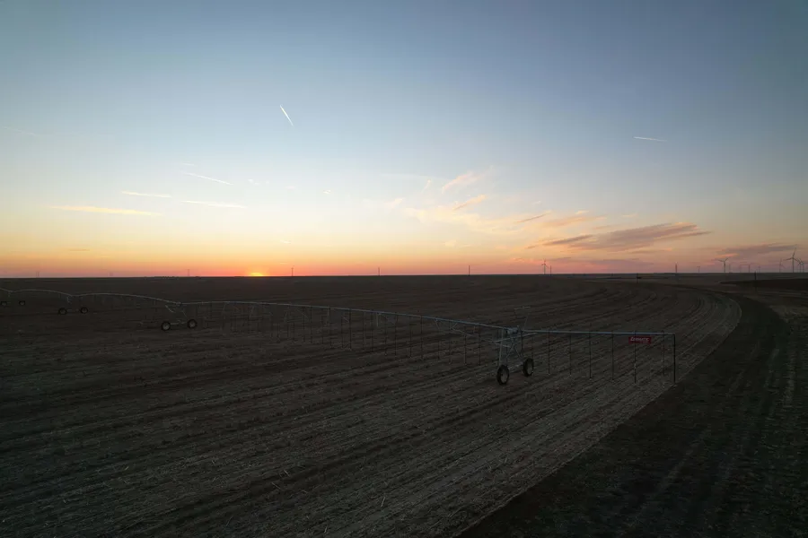 A contiguous farm in Hansford County with excellent soils. Water is provided by four irrigation wells, three natural gas turbines and one electric submersible. Water is disbursed by two half-mile sprinklers, one brand new 2024 Zimmatic and one 1998 Zimmatic. The 2024 Zimmatic is nozzled for 700 gpm and the 1998 Valley is nozzled at 1,150 gpm for a combined total gpm of 1,850+/- or 2.26+/- gpm/irrigated acre. The irrigation wells were test pumped during the middle of summer with results of 611+/- gpm, 118+/-gpm (sub), 464+/- gpm, and 744+/- gpm. Recent pump work on the larger well shows a total depth of 727' and a static water level of 356' which makes for 371' of saturated thickness. There are an additional three irrigation wells on the farm that are not in use and their condition is unknown, but can be further explored by a new owner. The corners are in a balance of CRP, expired CRP, and dryland. The Tenant owns the natural gas engines and 1998 Zimmatic Sprinkler. The farm is currently leased to a local farmer on a crop-share basis.