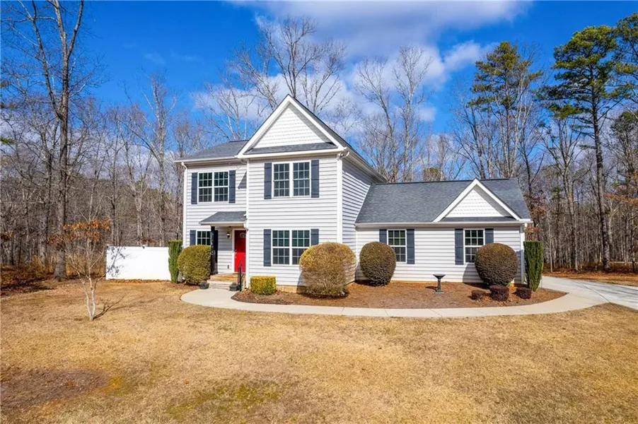 This extremely well maintained home sits on a private 1 acre lot. Main floor features kitchen with granite counters, island, breakfast room and stainless steel appliances with tile flooring. Living room adorned with wood flooring and an open, inviting feel. The separate dining room allows for a large guest list for formal dining or an exciting game night. Also featured on the main level is a guest half bath, laundry room and rear entrance. Enjoy your deck overlooking the private wooded backyard where your sure to enjoy the natural beauty as well as nature. Back inside, take the staircase up to the private living space with a lovely and spacious primary suite featuring double closets, primary bathroom w/ granite double vanity, linen closet and tile flooring, two sizable secondary bedrooms and second full bathroom also with tile flooring. The side entry two car garage allows for kitchen level entry, private parking and is spacious enough for storage and workspace. NO HOA! For additional space, the seller is also willing to sell the one acre lot next door with the home, but it is not included in the list price.