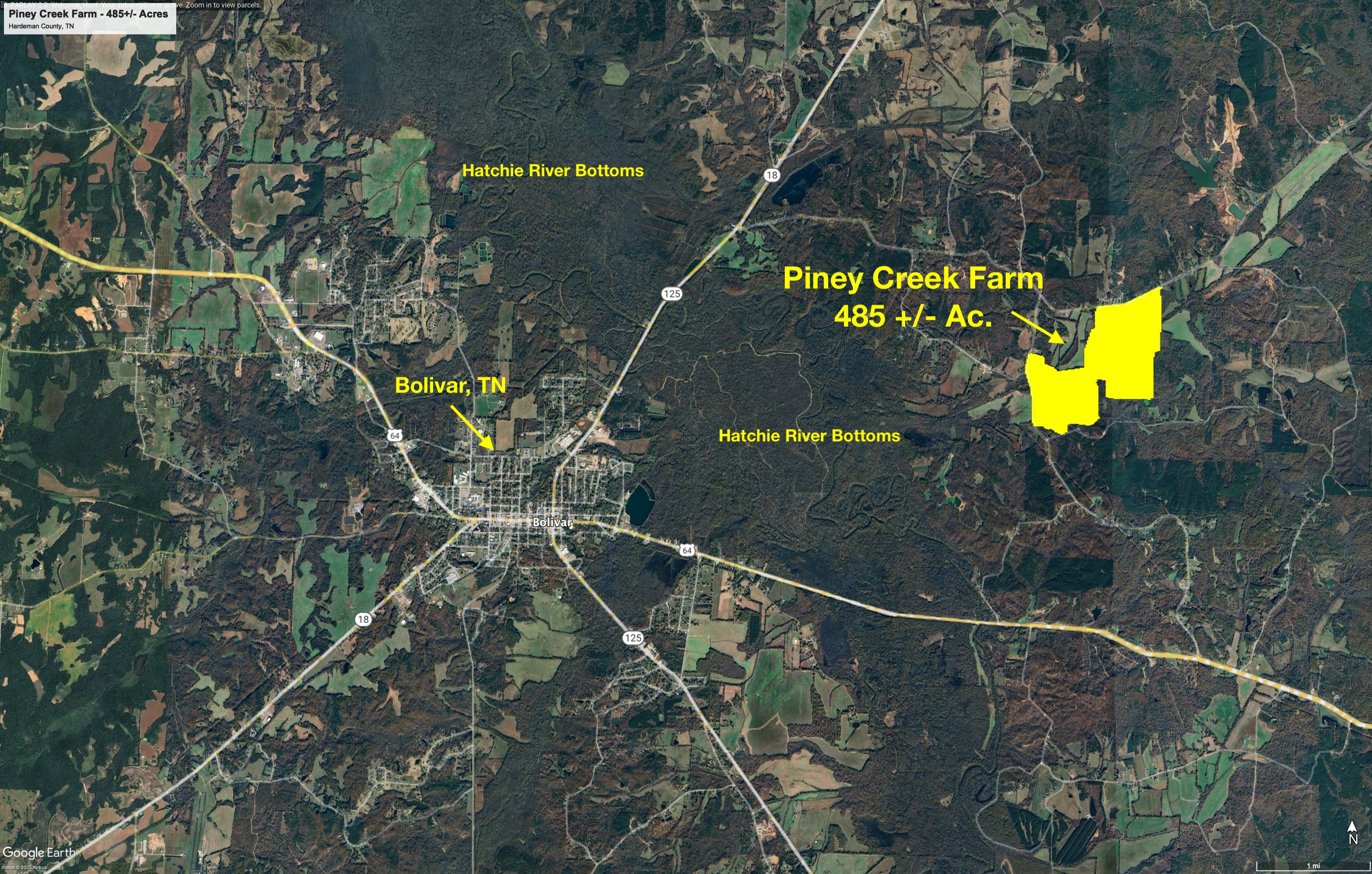 Piney Creek Farm is a productive row crop farm located in Hardeman County, TN near the community of Bolivar. The majority of the farms cropland is of the highly desired silt-loam soil classification and is currently in a corn-cotton-soybean rotation. In addition to being a significant income producer, the farm has several great building sites with commanding views. Piney Creek Farm consists of diverse land types including: bottomland and upland row crop, wetland and moist soil habitats, upland and bottomland hardwoods, and a few areas of upland pastureland.