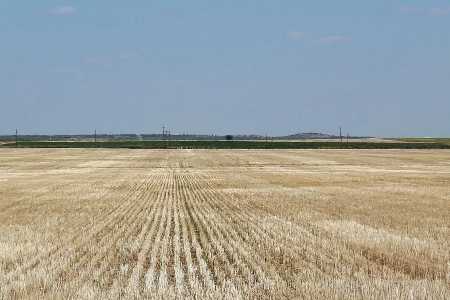 Three of the four sides are fenced (west: good, south: fair, east: none, north: half good/half poor). Electricity poles run down the west, south, and east sides as well. There are no working water wells in the place, but the farm used to irrigate through a side roll system. The farm to the west has a circle pivot system on it, where cotton is grown, and other pivots are in the area as well. A community water line runs down Highway 6...