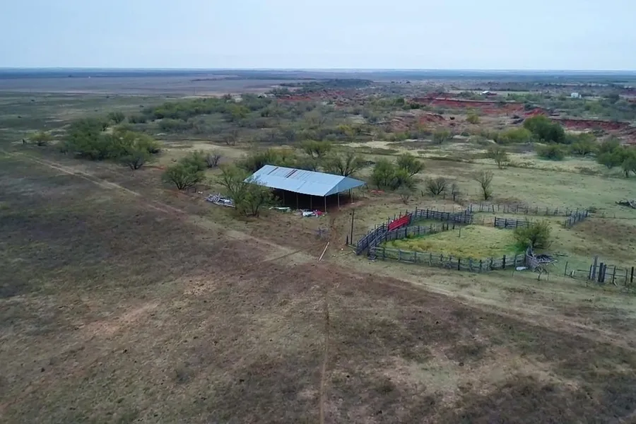 On the south end is a metal pole barn used as a cattle shed. A set of wooden pens is located near the barn too. There are 27 acres of native pasture in the southwest corner, which is basically one big ravine wash, with mesquite trees. The fences are good on all parts of the farm except for along the road where this block of native pasture is. The owner doesn't graze this 27 acres, but it could be used for hunting.