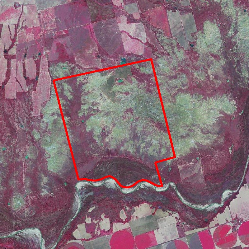 A little further south of this thick pasture, the ranch opens up to a lush river bottom, where bluestem and gamma grasses cover the ground and tall cottonwoods reach above the horizon. Wild plums are consistent throughout this whole area and not only provide great bedding areas, but are also a supplimental source of protein for the ranch's wildlife. There are a few areas along the river where small food plots have been carved out as well. Along the river, large chinaberry motts have grown into small forests and are ideal for tree stands and bowhunting.