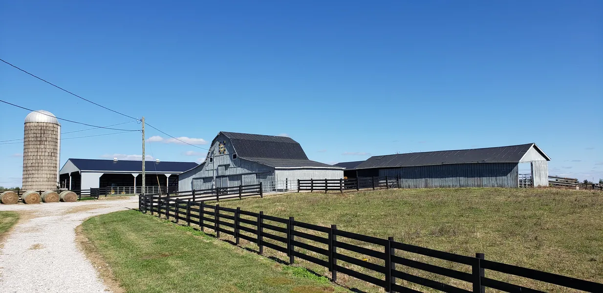 Barns, boundary and cross fencing, pasture and row cropping. Excellent opportunity to step into a well maintained and turn key cattle or otherlivestock facility. 60'x96' metal barn with partial concrete floor, electric, water, & belt silage feeder. Silo with ring drive unloader. Livestock barn with loft,electric, and water. 2 additional barns, both with electric. Boundary fencing is 7 strand barbed wire with hot wire in middle. 3 waterers at barns and 1 infield.