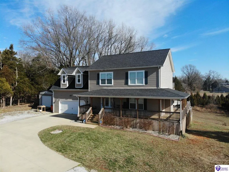 PENDING-ACTIVE UNDER CONTRACT. SELLERS ACCEPTING BACKUP OFFERS. Stunning home nestled on a 3+ acre lot conveniently located near the main gate of Fort Knox just off Patriot Hwy. Quality built home includes a 2/3rds wrap around deck plus a private deck off the master bedroom to relax and enjoy the wooded countryside. You can watch the sunrise on one side and the sunset on the other! Gorgeous kitchen boasts abundant cabinetry and has an open feel. The 9' tall great room has a gas log fireplace and has views of front and rear of home. Upstairs master bedroom has office/sitting area along with separate soaking tub and shower in private bath. 2 more spacious bedrooms share hall bath. Laundry is on same level for your convenience. Walk out basement has tall ceilings, a 3rd full bathroom and again a wonderful open feel. Outside there is lots of parking, a large 15 ft by 30 ft pool with wrap aro...