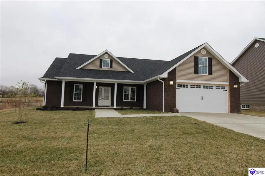 (Lot 25) Wonderful new home in the conveniently located subdivision of Bethel Country. Just like its name, a country feel but very close to Fort Knox and Elizabethtown. When you enter this home you will love the tall ceilings, the open floor plan & the many custom details this home provides: Double hung windows, crown molding and wainscoting just to name a few. Relax in your centrally located great room which is the perfect gathering place to enjoy family & company or head outside onto your covered patio or front porch and spacious landscaped yard. Your main great room flows into the kitchen with its abundant custom cabinets, granite countertops, & 4-piece kitchen appliance package. You will find 3 comfortable bedrooms with the primary bedroom featuring tray ceiling and a large walk-in closet. Once in the main bedroom note the private bath with double vanities, a separate soaking tub and gorgeous tiled shower. Enjoy your new home crafted by a local builder with years of proven quality workmanship. Want to feel safe at home? You will appreciate the extra security features built in whether you have a package coming you want secured or want to make sure you closed the garage door utilize the wi-fi enable garage door camera. An 8 foot tall insulated carriage door tastefully accents your insulated garage. VA/FHA Approved Builder.