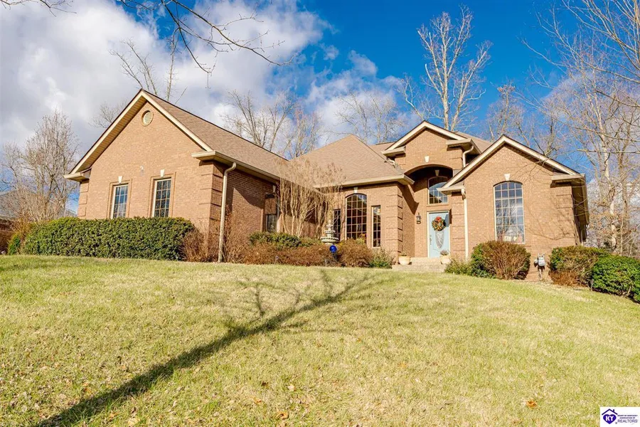 Make your New Year's resolution a beautiful, custom built home! Welcome to 256 Villa Ray Drive located in Wooded Hills Estates and built in 2006. This thoughtfully designed residence has countless features for comfortable living. Surrounded by beautifully mature landscaping, this home includes 4bedrooms, 3.5 baths, 2 gas fireplaces, gorgeous hardwood flooring throughout the main level, a two car attached garage and one detached garage/workshop. Downstairs you will find 9 foot ceilings, a kitchen/bar area, family room with a fireplace, bedroom, bathroom, bonus room, sitting area and a large storage room. Enjoy the backyard oasis or entertain guests from the extremely spacious covered back porch or step outside to drink your morning coffee while soaking in the park-like scenery on the private patio just outside the master suite bedroom. The master suite is stunning, featuring tray ceilings and crown molding. Come experience this exceptional property in a prime location near Fort Knox, Elizabethtown and Louisville!