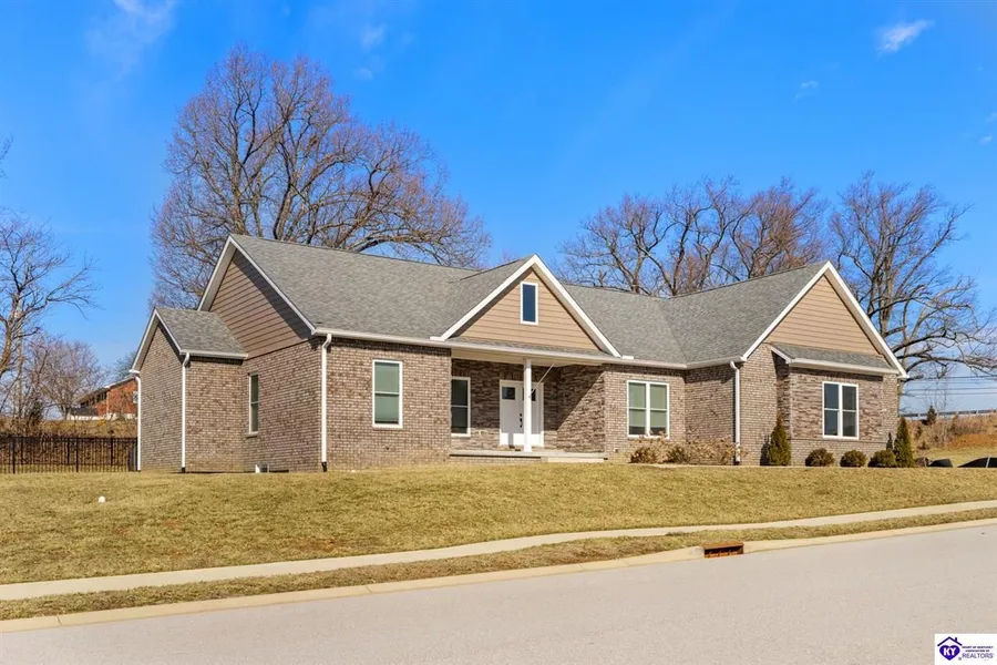 Welcome to 107 Summit Creek Dr, a stunning ranch-style home in the highly sought-after Summit Creek neighborhood of Elizabethtown! Built in 2022, this beautifully designed home features an open floor plan with modern finishes throughout. The main level boasts three spacious bedrooms, including a luxurious primary suite with a double vanity, freestanding soaking tub, and a separate tiled shower. The stylish kitchen and bathrooms showcase elegant granite countertops, while a versatile flex room offers the perfect space for a home office or additional living area. Cozy up by the fireplace in the living room or enjoy the beautiful fenced-in backyard surrounded by trees. The finished basement provides even more space with a fourth bedroom, a full bath, and plenty of room for entertaining. Three unfinished rooms in the basement provide space for extra storage and a storm shelter. Don't miss th...