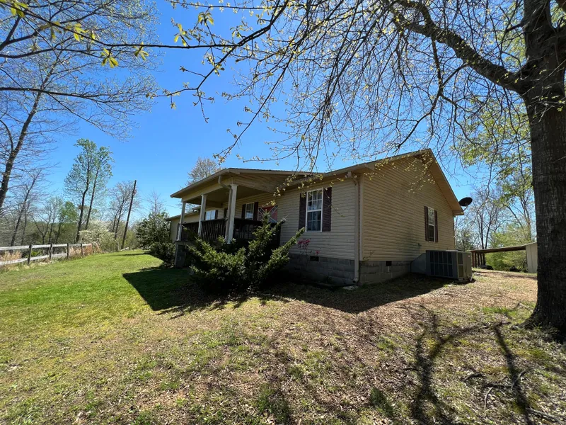 This Private 3bd/2bath Country Home for sale in Tennessee sitsupon a hill overlooking 10.9green acres of open fields. The home features a tall vaulted ceiling in the den, nice oak kitchen cabinets, and an electric fireplace. The double car garage has been converted into a huge man cave/game room but could be made back into a garage if needed. Outside you'll find a large carport and a nice hobby shop in the backyard. There's also another shop on the property with concrete flooring and 220-volt wiring for welding.