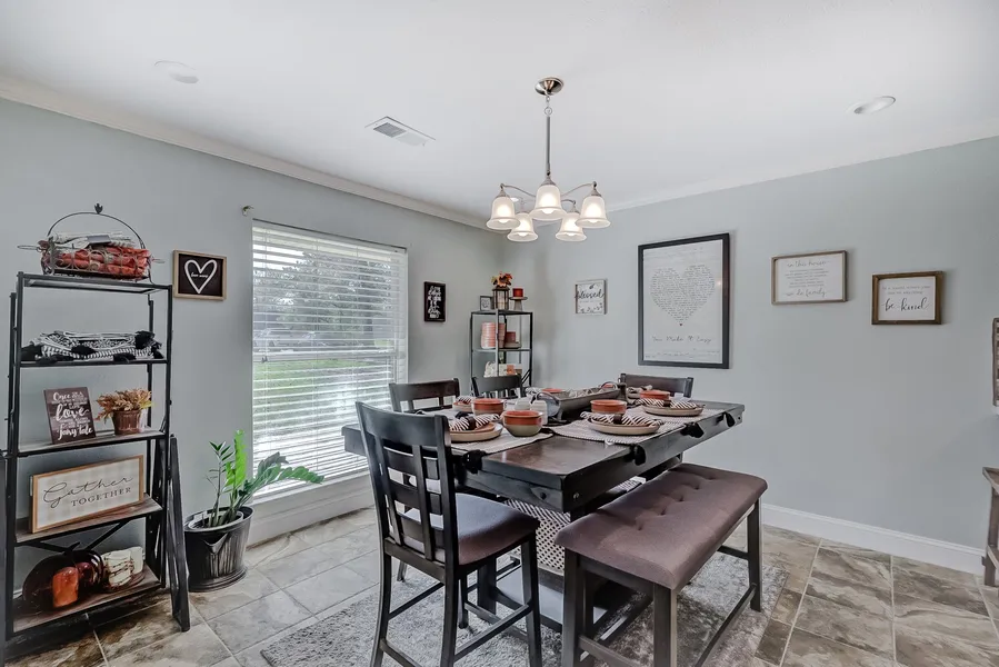 3 bed 2 bath home located on a 0.77ac lot in Pinewood that is move-in ready! There are two living spaces to utilize: the living room which has a wood burning fireplace plus a separate den/family room. The kitchen features granite counters and the fridge stays! There's a breakfast room off the kitchen plus a dining room. The primary bedroom has a full en-suite bathroom with double sinks and walk-in shower plus two closets (one is a walk-in). You'll love having no carpet in the house! Outside you'll find a covered back porch and an expansive yard with a nice seating area around the firepit. This is in flood zone X (preferred zone). Call today to set up your private showing!