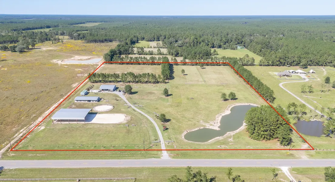 Discover this exceptional 20-acre equestrian estate, a true paradise for horse enthusiasts. Featuring a modern 1-bed 1-bath barndominium, this property includes an attached 40x60 insulated workshop with an office, bathroom, and laundry facilities. The impressive 45x85ft insulated barn boasts 6 spacious stalls equipped with fans, automatic waterers, and a climate-controlled tack room, feed room, and restroom.