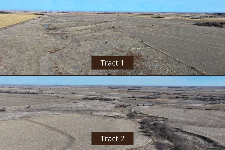 Up for auction are 468 +/- acres of dryland farm ground and pasture in Harlan County, Nebraska. Both tracts of cropland consist primarily of productive, well-laying, Holdrege Silt Loam Soils at a 1-3% slope. The lush grassland provides excellent grazing opportunities. Tract 1 includes a submersible stock well and a pond for a water source. Tract 2 is equipped with a solar well. This farm is open for the 2025 growing and grazing season. All acres are estimates provided by the assessors.