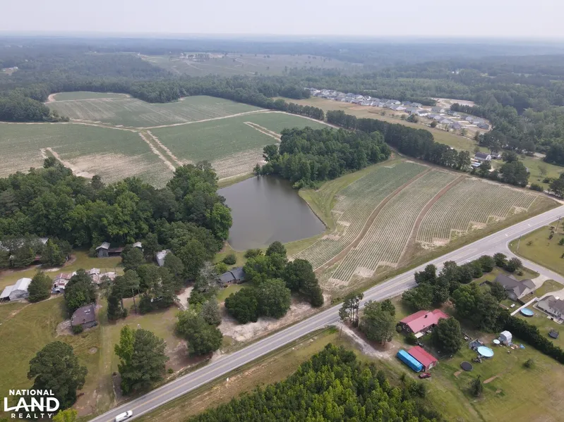Surrounded by new residential developments and zoned for RA-20, this tract is perfectly poised for creating acre lots, complete with county water. The gently sloping terrain enhances the overall appeal, with a picturesque 2-acre pond serving as a centerpiece. A substantial 8-inch county water main runs alongside NC 27, ensuring essential infrastructure.