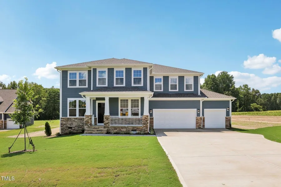 QUICK MOVE IN Elegant 3-Car Garage Home on 0.85 ACRES in Campbell Ridge! Discover the perfect blend of luxury and tranquility at Campbell Ridge - ideally located just minutes from Downtown Angier and the Wake County line. Enjoy the serenity of country living while staying conveniently close to highways, shopping, dining, and recreational options. Welcome to The Townsend - where space meets style in the most spectacular way! From the moment you step inside, you're greeted by elegance-think formal dining with a tray ceiling and a private study behind double French doors. The spacious drop zone off the 3-car garage is perfect for catching bags, coats, and shoes before stepping into the heart of the home. This open-concept dream features cabinet heaven-seriously, storage galore! The kitchen is a showstopper with soft-close cabinetry, pull-out shelves, stunning quartz countertops, a bold and trendy blue island, a farmhouse-style apron sink, and a ceramic tile backsplash. Whip up meals in your gourmet gas kitchen with double wall ovens, then stash it all away with ease in the walk-in pantry and the butler's pantry! The kitchen flows seamlessly into the breakfast area and oversized living room, where a 10-foot, 4-panel sliding glass door opens up to your massive 37-foot screened-in porch-perfect for entertaining or relaxing while overlooking your private 0.85-acre retreat. On the main level, you'll also find a generous guest suite with a full bath and walk-in closet. Head upstairs on gorgeous oak treads with wrought iron railings to find a huge loft, ideal for movie nights or game time. The primary suite is your personal sanctuary-extra spacious with a spa-like bathroom, dual vanities, 5-foot tile shower with a bench, linen closet, and a walk-in closet that conveniently connects to the super-sized laundry room (complete with sink and 10 upper cabinets!). Two additional bedrooms share a Jack-and-Jill bathroom, and there's also a bonus playroom with its own large closet and access to a third full bath. Outside, enjoy the peace and privacy of nearly an acre and use the 3-car garage for parking, storage, or your dream workshop. This home is the perfect marriage of peace, elegance, and convenience. Don't miss the opportunity to own a slice of luxury at Campbell Ridge! Photos are of the actual home. Home is complete.