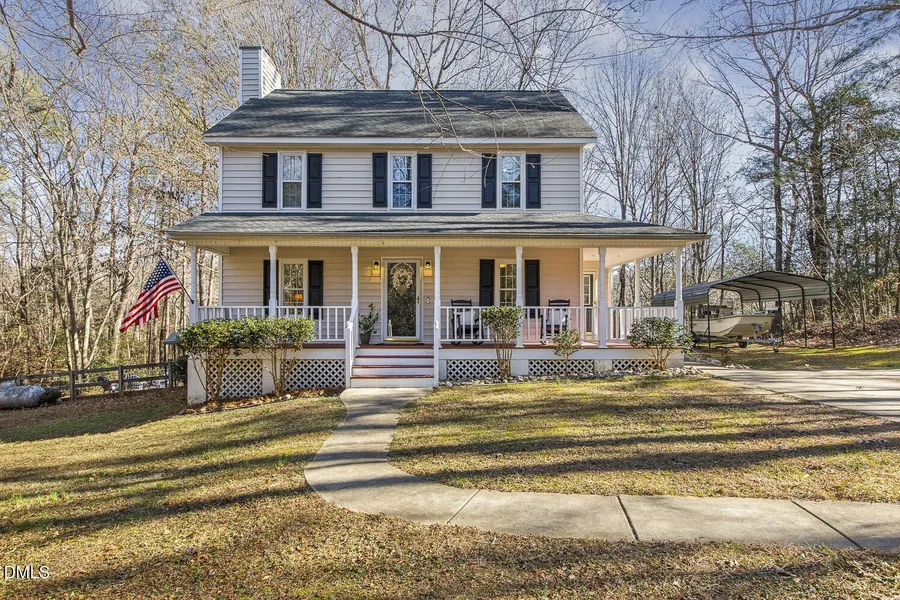 Tucked away on a quiet cul-de-sac, this charming 1,528 sq ft home invites you to slow down and settle in. Nestled on a private 2.39-acre wooded lot with no HOA, it offers the rare combination of peaceful country living and everyday convenience - just minutes from town. The sweet wraparound front porch sets the tone, welcoming you home and creating the perfect spot to enjoy your morning coffee or unwind in the evenings. Inside, a traditional floorplan features a formal dining room, living area, and kitchen on the main level, with three comfortable bedrooms tucked upstairs. Recent updates, including a newer roof and HVAC, provide added peace of mind. Step outside to soak in the serene surroundings from the deck, gather with friends around the fire pit, or imagine the many ways this special property can grow with you. With plenty of space and endless possibilities, it truly feels like a personal retreat. Enjoy the quiet of the countryside without sacrificing accessibility - just 4.5 miles to downtown Fuquay and 12 miles to Lillington. Charming, private, and ideally located, this is a place you'll be happy to call home.