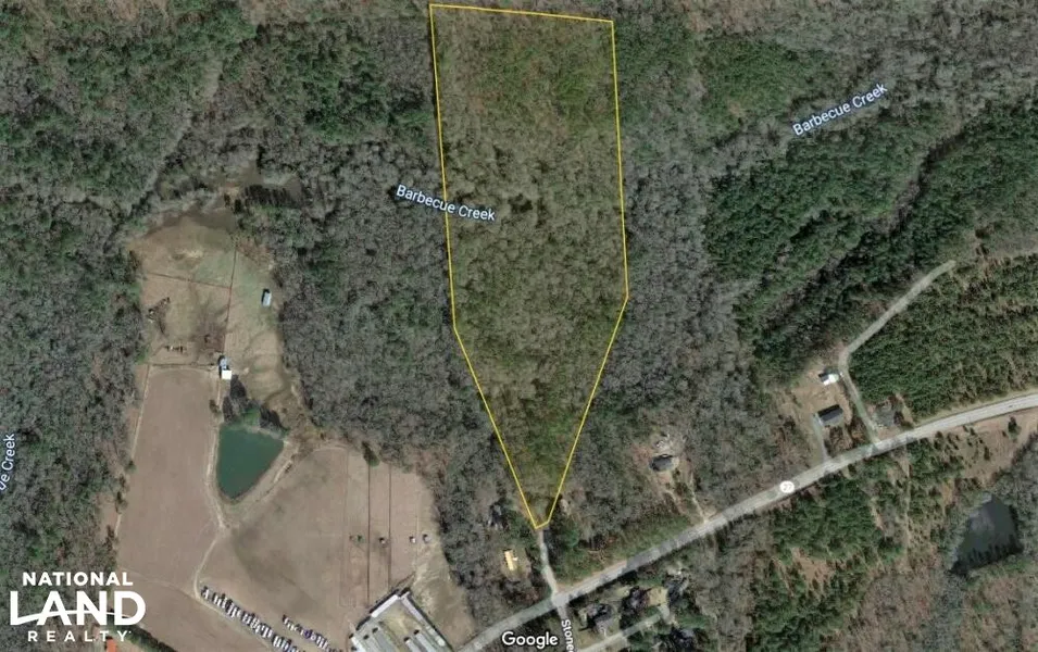 Barbeque Creek flows through the rear of the site and there is a mature stand of mixed hardwoods and pine. The majority of the property is considered floodplain and not buildable, however, it is a gorgeous complement to a home built close to the front and could be used for recreation & hun...