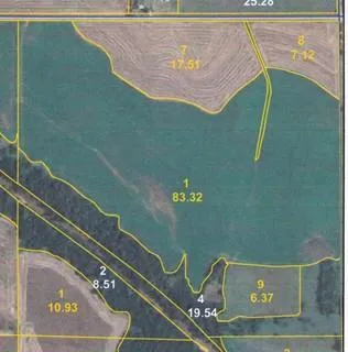These are two tracts separated by road, they lie just east of Bluff City KS, and within 2 miles of a grain elevator. The USDA shows 612 total farmland acres and 439 acres cropland. The land is currently cash rented allowing possession after crops are removed (depending on the season). The land is located in the section 15 and section 22 in township 34, range 5, Harper County, KS. The south quarter has approximately 1/4 mile of bluff creek. The seller will be keeping the acreage around his home and without an official survey, he believes it to be between 15 & 20 acres. Minerals are negotiatable.