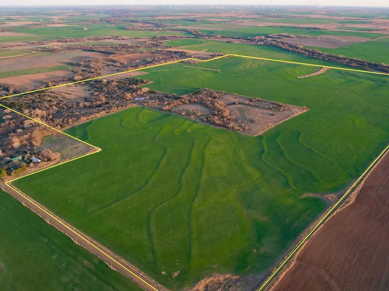 Property Description: Located east of Bluff City, Kansas this tract of land has a mix use variety from tillable income, pasture income, excellent hunting, Bluff Creek, and ponds. There are 323+/- acres in tillable currently planted to winter wheat. Buyers have the option to pay 1/3rd expenses and buy out the growing wheat crop. Class II Silt loam and sandy loam soils make up a large majority of this farmland with 0-3% slopes. The pasture on this farm has excellent fences and entry gates with 101+/- acres in thick grown up pasture grass and two ponds. One pond is currently dry. There is a run off creek in the pasture currently holding water. The far sw portion of the land has Bluff Creek cutting through it with approximatley 5+/- acres of mature timber. There is a very high deer density on this farm with excellent whitetail hunting!