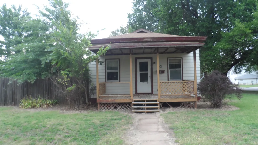 3 Bedroom 1 Bath /Utility and Hardwood Floors are just part of the amenities. Nice sized Living Room. Kitchen has nice cabinets. Dining Room with a lot of storage. Back Deck and Covered Front Porch AND a 40' x 24' Metal Garage/Workshop. Call: GARY GRIGSBY to view this home ph#620-886-0766 or 620-254-7350