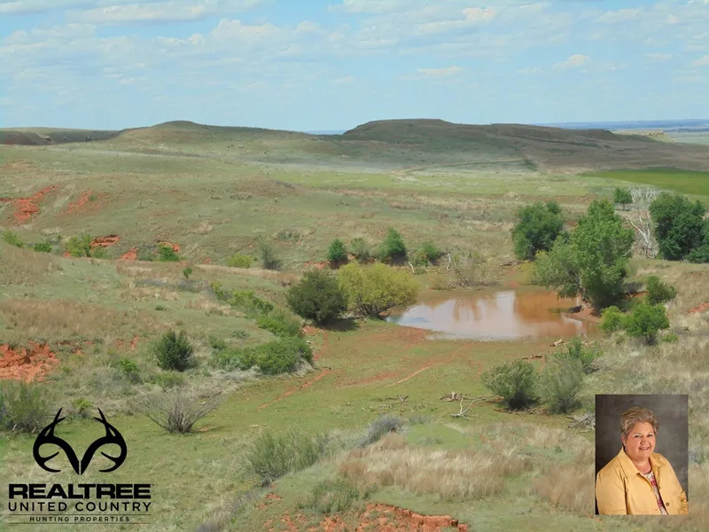 The land consists of 847.2 acres of native and improved grasses of which 195.2 acres is currently in CRP, due to expire in Sept. 2019. The terrain ranges from flat to gently rolling hills with several high ridges and deep draws with good cover which would support the bow or gun hunter. There are several areas to develop food plots. Wildlife habitat consists of whitetail and mule deer, bobcat, coyotes, quail and much more. The property is fenced with 4 wire fences and watered by windmills, a pond and several catch water ponds. Easy access just off Highway 283. Located north of Gate, Oklahoma.