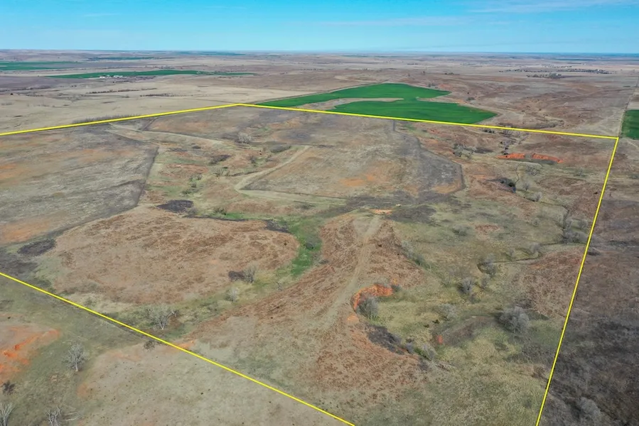 Just north of State Highway 64 on the east side of the Selman Blacktop is a great quarter-section of land that has a lot to offer. This tract features approximately 77 acres of tillable in two separate parcels that are fenced off of the native pasture draws. This is an ideal setup for someone wanting to graze cattle throughout the year. The draws are made up of primarily native grasses along with a seasonal spring that runs along the entire eastern side of the property. There is a variety of Hackberry, Cottonwood, China Berry, and Hedge trees throughout the bottoms. The rolling terrain, thick native grass, and plum thickets provide ample cover for deer and other wildlife. The whitetail genetics in this area are as comparable to southern Kansas as you'll find. Whether you are looking for a great tract that is easily accessible to farm and run cattle, or you are looking a tract with hunting potential and some agricultural production income, don't overlook this quarter. Get ahold of Rustin for all inquiries.
