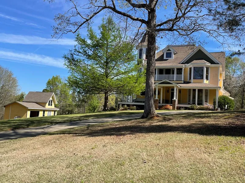 Magnificent Victorian home located in Harris County! This home affords southern charm, from the wrap around porch to claw foot tubs in all bathrooms and antique chandeliers throughout. Heart Pine Hardwood floors, walk-in closets, 4 fireplaces, large attic space for storage, and separate showers in all baths. The kitchen has a large island, lots of cabinets, a large walk-in pantry, and stainless steel appliances and has an antique look that compliments the southern dcor. 2 acres of beautiful land with multiple entertainment areas that would be perfect for a wedding venue or large events. It also has an outbuilding that could be transformed into a mother-in-law suite or man cave or she-shed.