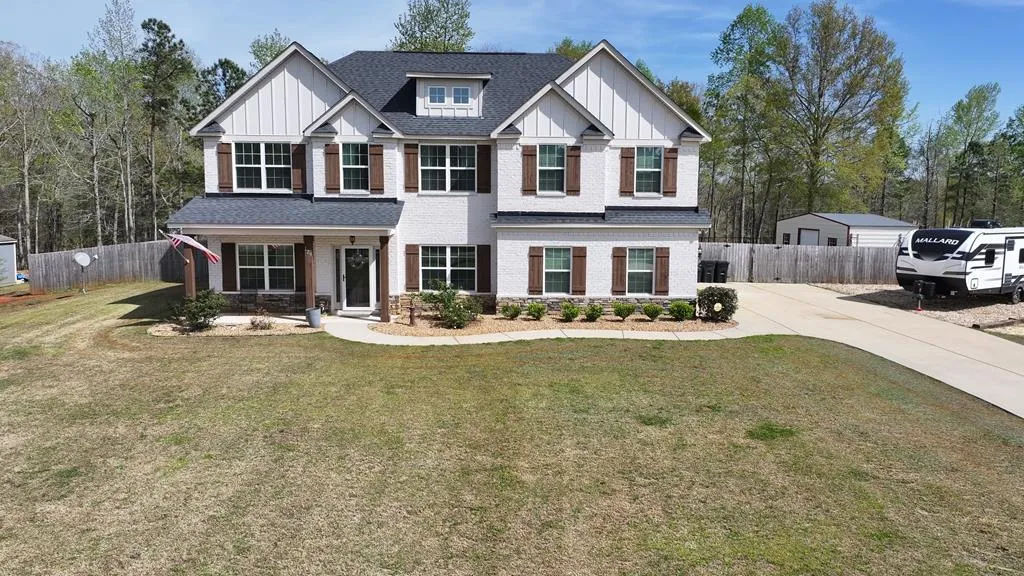 This lakefront home is truly remarkable! Step inside to find a well maintained 4-bedroom, 2.5 bathroom haven. The foyer leads to a formal dining room with coffered ceilings. Across the foyer sits a stunning home office with elegant glass doors. You'll discover spacious living areas adorned with high-quality finishes throughout. The oversized kitchen boasts granite countertops and a huge island overlooking the cozy living room with wood burning fireplace. Upstairs, all 4 bedrooms and the laundry room await. The primary bedroom, with its electric fireplace, offers a cozy retreat. Set on 2 acres with direct lake access, the property exudes serenity and charm. Indoors, engineered hardwoods and granite countertops add a touch of luxury, while the gourmet kitchen, equipped with modern appliances, caters to culinary enthusiasts. Outdoor enjoyment is effortless with a covered patio featuring a s...