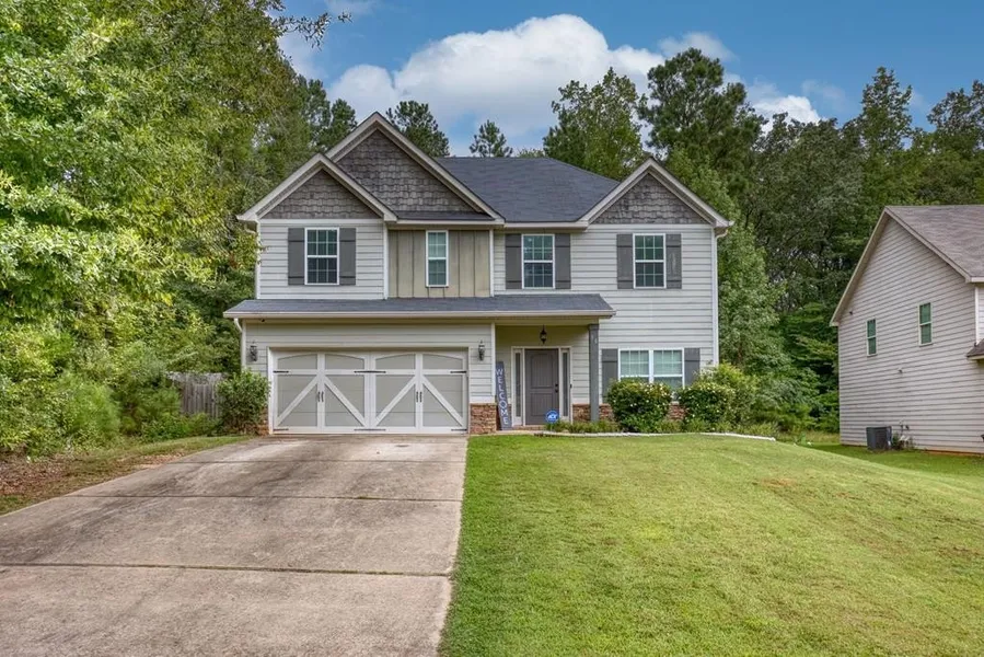 Welcome to this beautiful open-concept home in sought-after Harris County! Ideally situated on a desirable corner lot, this home offers great proximity to top-rated schools-perfect for families. The spacious kitchen features a large island, granite countertops, stainless steel appliances, a tile backsplash, and a walk-in pantry-all overlooking the cozy family room. A separate dining room with a coffered ceiling adds a touch of elegance. Upstairs offers four roomy bedrooms, including two with a Jack & Jill bath and a luxurious primary suite with dual closets and double granite vanities. Enjoy the covered game-day porch with a fireplace-perfect for entertaining year-round!