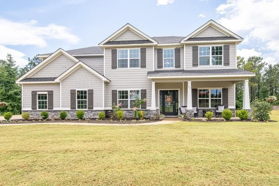 Located in desirable James Creek in Fortson. Enjoy life in Harris County and all that it offers to include an excellent school system. Enter the front door to a stunning 2 story entrance foyer, formal dining room with coffered ceilings that flows seamlessly to the kitchen. Gourmet chefs kitchen with stainless gas cooktop, tiled backsplash, beautiful granite countertops, and a large island with seating area. Spacious pantry area in the kitchen for added storage. Open concept living room features a wood burning fireplace. The main level also features a guest bedroom with ensuite bath perfect for visiting family and friends. Owners entrance features a drop zone area perfect for hanging backpacks and shoe storage. Flex space off the entrance foyer is perfect for a home office. The primary suite is upstairs and is very spacious with ensuite bath to include a dual sink vanity, custom tile show...