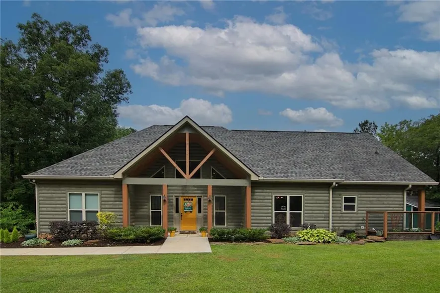 Harris County like new rustic home fronting 12 acre fishing lake on 6.88 acres. Featuring 3BR, 2BA, bonus room and open floor plan. Large kitchen with granite island with lake views. Large great room with wood cathedral celling and wood burning insert. Large master suite with beautiful tile shower. Enjoy covered porch with fireplace overlooking fishing lake.