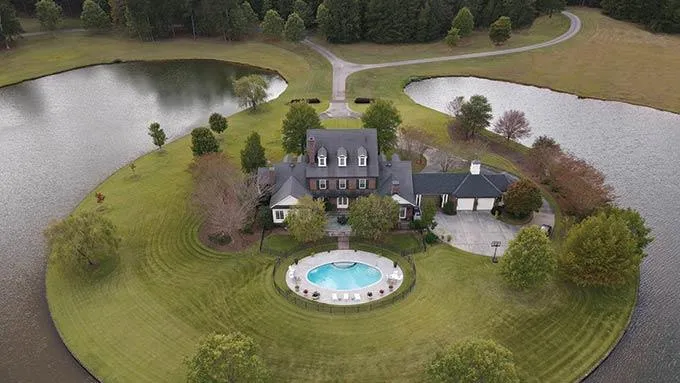 Situated on a mind - blowing beautiful property with mature professional landscaping. The lake is 23.7 acres and surrounds the home; there is a seawall between home and lake. Ingram Creek has a bold flow of water that crosses from east to the west across the entire property.