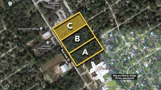 Auctions: 11:00 AM 4/8/2021 To Make an Offer, Please Call 800.801.8003 Parcel C 2.3+/- ac with 221+/- ft of frontage on Red Oak Dr. Located conveniently near Houston HCA Hospital, Cypress Creek Hospital and Lone Star College. Multiple large retailers including Kroger, David's Bridal, Target, Kirkland's, Petco, all within easy driving distance. Just 6 miles from Greenspoint Mall, and 7 miles from Willowbook Mall. Offsite utilities include electricity, gas, sewer and water available through Westador MUD. BUYITNOW Note: A Buyer's Premium (Buyer's Fee in WI) will apply for this property. Please see Terms of Sale for details. Broker Licenses: TX Jeffrey Michael Ashby RE LIC 550021; Monte W. Lowderman AUC LIC 00015800