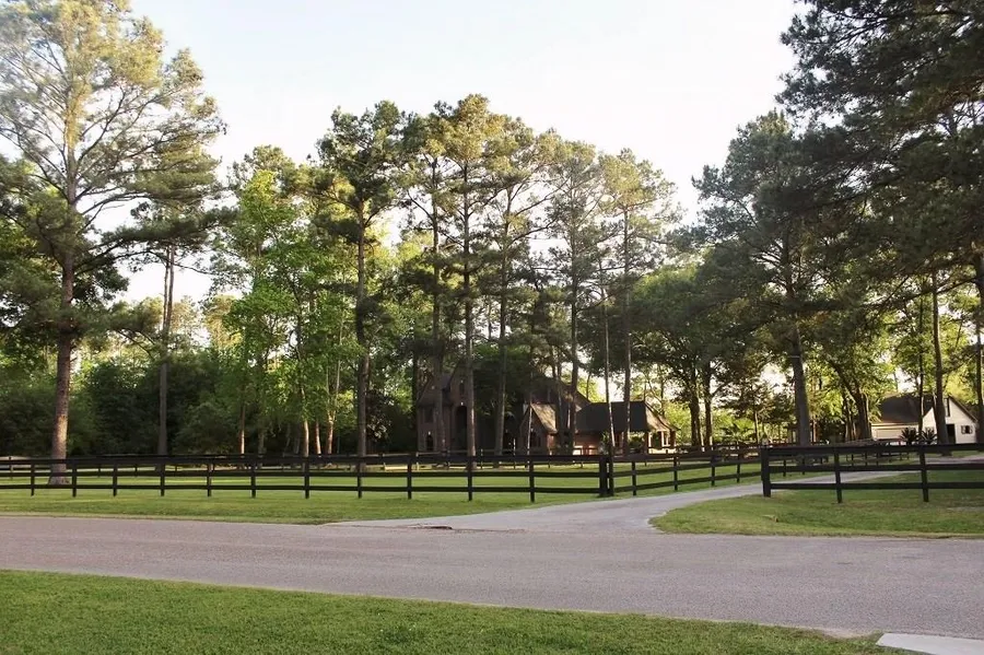 Hard to find 3 acres w/horses allowed, restricted 1 street subdivision. Barn, pool, separate 1-story guest quarters w/full kitchen, bath, fireplace, Murphy bed, private deck & hardwood floors (room to expand up). House is 4/3.5, master down, study w/built-ins, formal dining w/hardwoods, large open game room up, w/wet bar. Great entertaining kitchen w/island, breakfast bar, ceramic tile. Recent carpet up. Volleyball pool, Pool house w/half bath. Barn features 2 stalls, tack room, feed room, laundry. Attached carport built as part of house. 3 bedrooms up, 2 with built-in desk, all walk in closets. Master overlooks pool w/private French doors. Master bath w/whirlpool tub, separate shower, double sinks & vanity sitting. Horse arena w/2 separate pastures, more can be added. Beautiful treed lot, circle drive w/plenty of parking. Great Klein schools. Close to Exxon and easy access to 99.