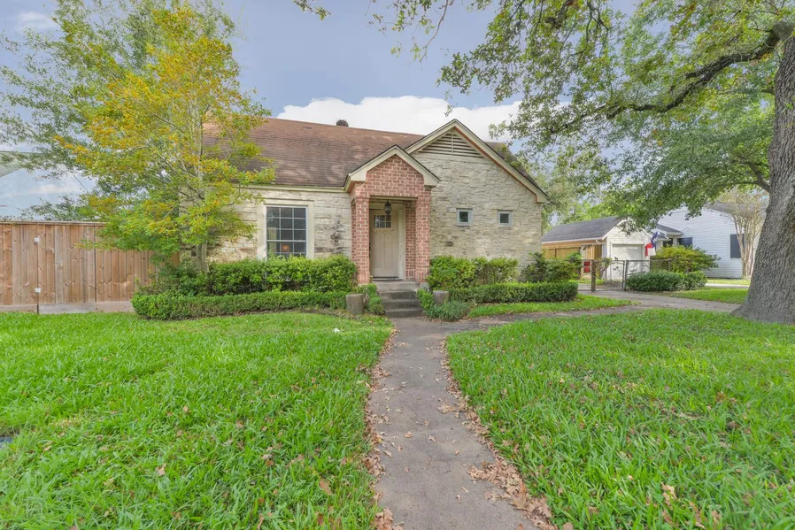 Rare find, PRIME location, minutes away from Downtown Houston with quick access to I-45! This charming cottage style home boasts craftsman style elements throughout! A well manicured lawn & landscaping welcomes you home. A gated driveway leads to a 2 car garage & carports! Buyers will adore the stone and brick exterior with cozy front porch and beautiful craftsman style door! Rich hardwood floors flow nicely throughout the home with an abundance of lovely picture windows allowing for plenty of natural light. The spacious Living area has a gas fireplace and handcrafted mantel & windows galore! The Formal Dining area is nestled just between the Kitchen & Living areas with a beautiful archway and a wall of windows! Kitchen is complete with sleek Stainless Steel appliances, rich cabinetry, plenty of counter space & a breakfast bar. Impressive Master Suite with French Doors and unique Master bath! A spacious guest room and updated hall bath await! Lush & fully fenced backyard!