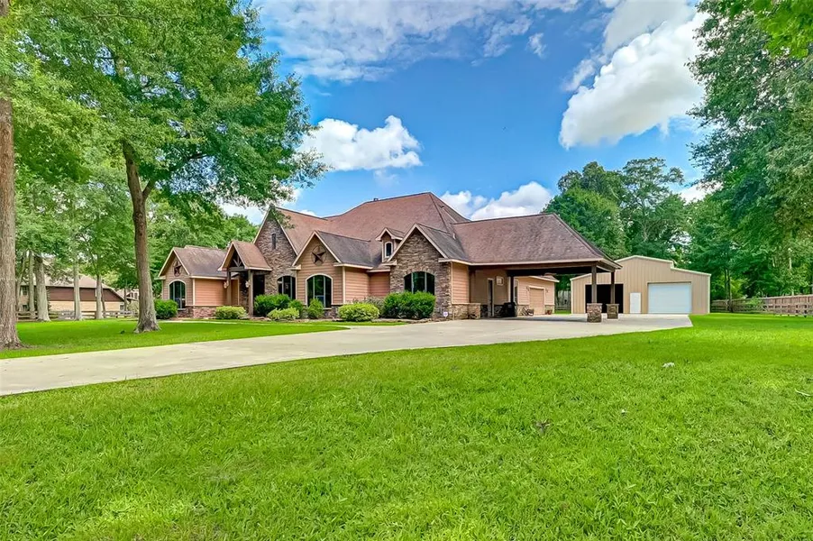 HELLO COUNTRY LIVING! 5 bedroom, 4 full bath, 2 half bath; Minutes to Lake Houston, 35 min to Exxon, Commons HOA, access to Boat Ramp at Lake Houston, tax rate of only 2.05!! 3 FULL A/C\'s, recent Wood Fencing, & more! The SPACIOUS living area features a stone gas-log fireplace for those cozy nights! Entertaining is a breeze in this open floor plan, equipped w/a deluxe butler\'s pantry that boasts custom cabinetry wine rack, & JennAIr wine cooler! The GOURMET kitchen features granite countertops, built-in SUB ZERO type Frigidaire refrigerator w/DOUBLE motors, exquisite 6-BURNER STOVETOP with DOUBLE OVENS, TOP LOAD built-in microwave, all JennAir!! SPACIOUS primary suite with wood accented tray ceiling, & spa like primary bath featuring double sinks w/custom wood cabinets, spa tub w/jets, & glass door shower! Second floor BEDROOM & FULL BATH, 1600 SQFT WORKSHOP, & POOL SIZED yard ready for you to create a backyard OASIS! Horses ALLOWED!