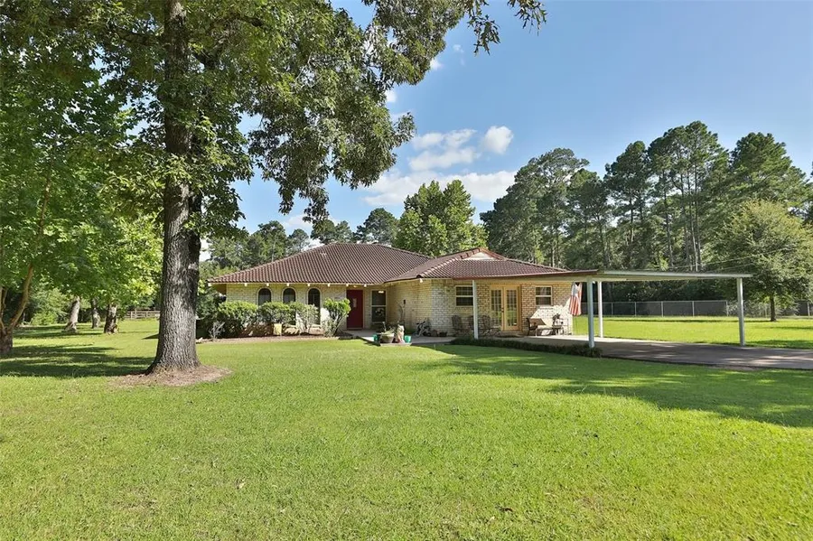 Beautiful one story fully bricked home sitting on 1.39 Acres. Fully fenced corner lot surrounded by trees. Open Kitchen w/ Island, large pantry. Updated flooring,windows, refriegerator, range/oven. Custom motorized window shades in living room & flexroom, custom motorized draperies in Primary bedroom. 2500 Sq. Ft workshop added to the property with all utilites ran. Seller is running custom drapery/window shades business from the home & workshop. Garage has been closed in to make office space. Floor in converted garage area has been leveled to the slab, French doors & windows added along with duct work for HVAC (Sq ft approx. 500 ft not included on the listing). Additional area has been closed off with sliding glass door (used for office space), frame can be removed to open the space.
