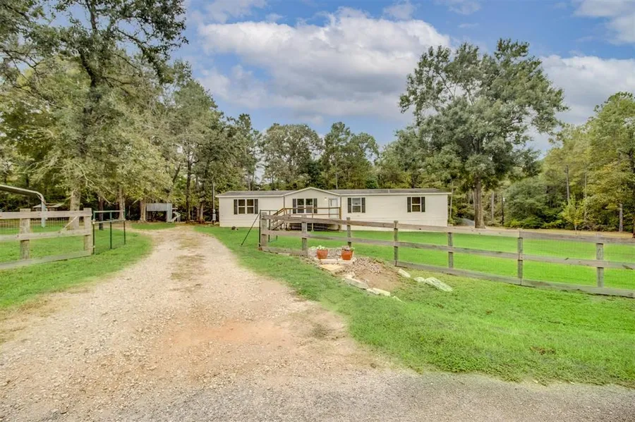 Welcome home to 25370 Cedar Hill Drive! This manufactured home sits on 1.64 high and dry acres at the end of a Culdesac. The entire property is fenced with a private gated driveway. There are 4 bedrooms, 2 bathrooms, a carport, a storage shed, and a playset. Just off the front door is a large Texas sized deck perfect for sipping your morning coffee. Inside you'll find an open floor plan with the kitchen opening up to the living room. The kitchen features an island and an attached dining room. In the spacious primary bedroom there is an ensuite bathroom and walk-in closet. This property and home is ready for new owners and new memories to be made. Schedule your showing today!