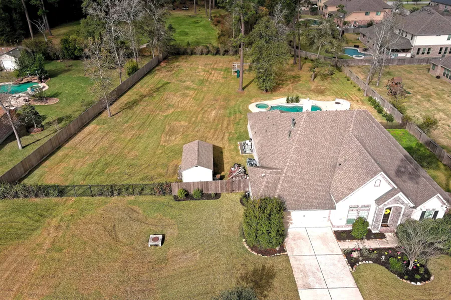 One story home located on 44,675 lot, with heated pool, spa & fire pit for everyone to enjoy. ALL the space you need with 4 bedrooms, 3 full bathrooms, study & media room. Gourmet kitchen for the family chef w/lots of cabinets space. Plantation shutters throughout....Tandem garage for extra space. Premier Cottage Shed has been installed in Dec '19. Swing set to stay.
