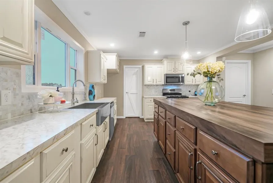 Nestled in the quiet subdivision of Williams Scott Upper League ABS sits a cleared property on an ACRE with a peaceful Boulevard position. This 3Br 2Ba home on an Acre offers a stunning Waterview Sunset of Baytown\'s Fred Hartman Bridge. No HOA fees, No restrictions, No flooding-per seller that had lived on land for decades!! The kitchen features a farmhouse style sink, spacious walk in pantry with barn style doors, plenty of cabinet storage, & a large island that serves as a breakfast bar as well. Overlooking the kitchen is the living room with built in book shelves and entertainment center. A spacious primary bedroom welcomes you with a private primary bathroom that boasts an oversized soaking tub and a ample separate shower along with double sinks.Sip your morning coffee and gaze at natural wildlife visit the water everyday. Close to Baytown\'s shops, schools, and quick access to 146 ...
