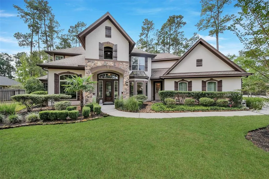 5/4/3 w pool & spa on a 1 acre, cul de sac homesite in sought-after acreage community. Enter the 2-story foyer to appreciate the finishes & attention to detail. Work from home in the executive study. Kitchen w island, dbl ovens, & a hammered copper sink are a few things to delight the family chef. Wine bar connects to the formal dining area. Owner's suite w access to the covered patio and a spa-like bath w dual vanities plus jet tub & sep shower. The walk-in closet is not to be missed! 2nd bdrm down w prvt bath & access to the backyard. 3 bdrms & 2 baths up along w a pool table-sized gameroom & dedicated theater rm. Walk-in attic. Endless hours of fun or tranquil relaxation in the fenced yard w pool & spa, plus a cozy firepit. The car enthusiast or anyone needing extra space will appreciate the ovrszd 3 car garage, including a climate-controlled 3rd bay. Whole home generator. If you crave the quiet of the country but need the convenience of the city–this is it! Low taxes. No flooding.