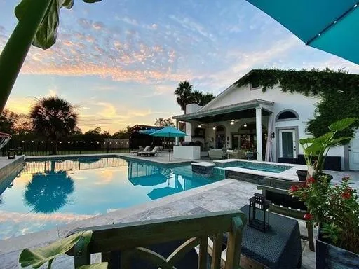 This unique Oasis has it all! 20 minutes to Downtown, close to the Houston Polo Club. Very private 2.06-acre property in Highland Heights. 5104 SF combined living space! Elegant 2 story home (3-4 bedroom) with fantastic guest house that has been utilized for rental income via VRBO and Peerspace. Separately fenced, massive 29,000 GALLON HEATED POOL, hot tub, expansive deck. Irrigated pasture area and barn for your horses.MAIN HOME opens to vaulted ceilings and features custom kitchen, flex room, office. Upgrades include new roof, exterior paint (2022), tankless water heater, radiant barrier insulation, solar skylights. Professional in-ground basketball goal on spacious driveway. Separate GUEST HOME complete with 2BR/1.5B, full kitchen, laundry room, gas fireplace, and large back porch with wood burning fireplace, built-in grill, fridge. Enjoy entertaining and hosting events as well as hou...