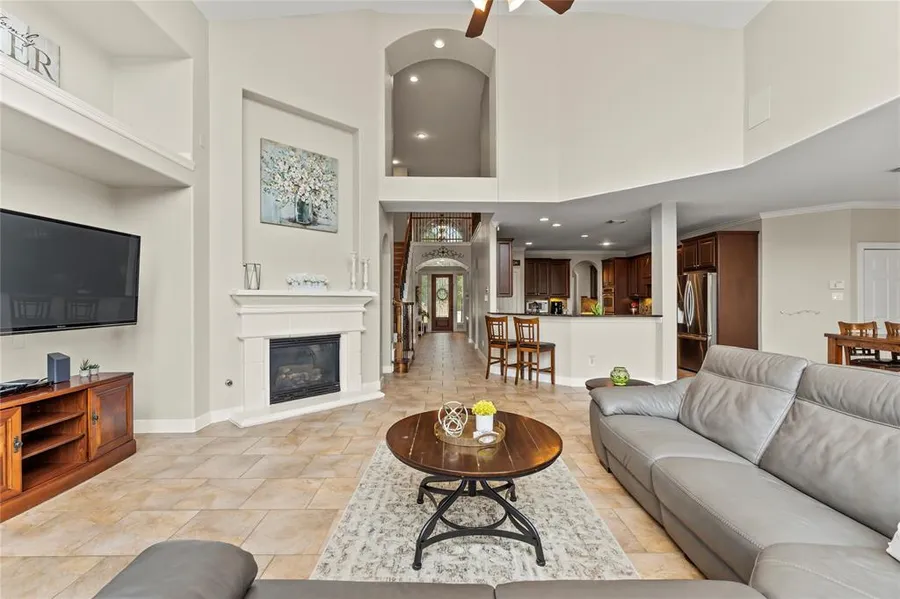 If you love to entertain, this home is for you! This fantastic open floorplan is filled with natural light for a space that's easy to host in and you will love to show off! Gather with family in the impressive two-story family room that overlooks the kitchen. This kitchen is perfect for hosting guests with dual ovens, a huge granite island, under cabinet lighting, and more! An office/study tucked away off the breakfast nook offers so many possibilities...a study, hobby room, play area, and more! Relax and unwind in the luxurious primary suite with a spacious sitting area, spa-like bath, and walk-in closet. Upstairs, the kids will have their own space to play in the oversized game room/media room with a homework desk and French Doors. Check out this amazing backyard! The extended patio offers loads of room for outdoor entertaining with grassy space left where the kids and pets can play. S...