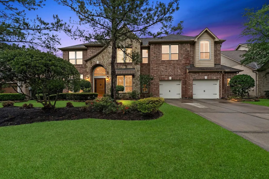 Premium location in The Woodlands Creekside Park situated across Lake Paloma and Tupelo Park! One of the most beautiful parks in the community. 4 BEDROOMS (Master bed up, 2 secondary bed up, guest bed down) and 3.5 BATH. This home features an oversize 2-car garage, wired for a future generator. This home features brick accent walls, huge natural wood beams, hardwood floors, custom fireplace, private study, upgraded electric blinds and plantation shutters throughout. Kitchen has large island, custom cabinets, granite counter tops, stainless steel appliances. Spacious Master Suite features a brick accent wall, tray ceiling, mini fridge/coffee bar area, attached extra room perfect for nursery/exercise/meditation. Master closet has high end shelving. Game room is upstairs. Large Covered patio. Many amenities located at a walk distance as Robert Fleming aquatic park and the community center where you have access to trails in the nature. A gem in the woods.