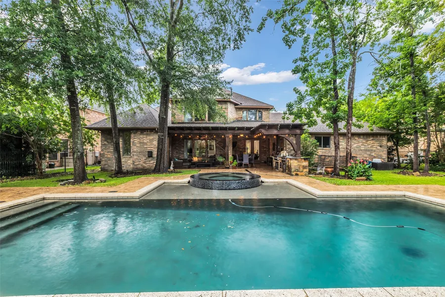 Welcome to your dream home, nestled on the 6th hole of The Woodlands' prestigious Gary Player golf course. Freshly updated with a modern touch, the walls and kitchen cabinets now boast a crisp white finish, creating a bright and inviting atmosphere. This home has it all with real hard wood flooring, plantation shutters, gated entry driveway with 2 separate garages and a porte-cochere for tons of covered parking! Great kitchen with double ovens, built in fridge and massive walk-in pantry. The primary bedroom is downstairs with huge his & her closets and whirlpool tub. Three more large bedrooms are up with 2 baths (one jack & jill) plus game room and media room. The backyard of this home is spectacular with an outdoor kitchen, pool bath, pergola, covered patio and gorgeous pool and spa! All of this plus amazing Woodlands schools (TWHS), what a great place to raise a family! Close to everyt...
