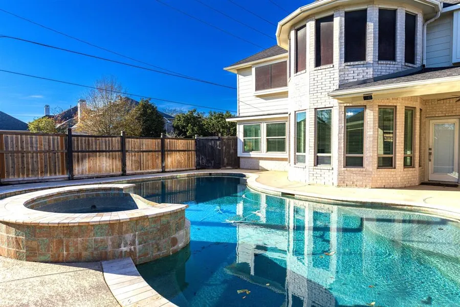 Welcome to this exquisite, spacious family home crafted by Trendmaker in Grand Lakes. Enter the grand foyer with soaring ceilings and a stunning curved staircase featuring rich wood steps. The open floor plan features versatility allowing for 5 bedrooms with 2 downstairs or 4 bedrooms with an oversized study down...with 2 full baths down and 2 full baths up. Recently updated, oversized island serves as the centerpiece of this chef's kitchen, crafted from high-quality quartz and designed to host family and friends. Cozy family room with built-ins and gas fireplace. Master suite boasts a separate shower and jetted tub. Step outside to your personal oasis, where a vast covered patio awaits family gatherings and weekend barbecues. The outdoor space is a masterpiece featuring a heated spa and pool with built-in swim jets, perfect for both relaxation and fitness. Abundant parking and storage with a 3-car detached garage completing this perfect family haven in the vibrant Katy community.
