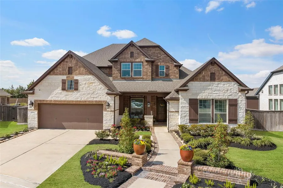 STUNNING 2-story David Weekley former model plan \"Connelly\" nestled on quiet cul-de-sac in the amenity abundant community of Bridgeland\'s Parkland Village. 2 bedrooms & 2 baths DOWN! Gorgeous wood-look tile flooring flows throughout main living spaces! Custom built-ins in formal dining w/wine frig & more. Private study w/double doors! Beautiful open concept living w/HUGE island kitchen boasts ample cabinets w/ pull out shelves, exotic granite, Electrolux double convection ovens, w/huge walk-in pantry. Family room features soaring ceilings, stone surround LED fireplace & wall of windows! Custom lighting added. MUD bench & huge utility room w/folding table & storage! Primary w/ensuite bath features dual vanity sinks & spa-like walk-in shower! Upstairs offers 2 bedrooms, 2 full baths, game & media rooms, bonus loft, & extra storage! Extended outdoor living space has both covered & uncovered areas perfect for entertaining! Full gutters, water softener & sprinkler system! CFISD Schools!!