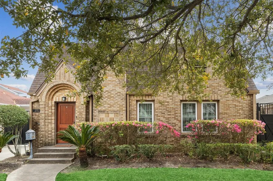 This charming 1938 brick bungalow perfectly marries original charm & character w/ essential modern features & improvements. The versatile floorplan offers 2 or 3 bedrooms in the main house along w/ 2 full baths, including a large primary bedroom w/ ensuite bath. A large living area centers around a fireplace w/ tile surround, beautiful wood millwork & trim, and provides access to the light filled sunroom. An arched entry leads into the formal dining room w/ classic swinging passthrough door into the kitchen/breakfast area which features great storage, KitchenAid SS appliances, & a custom built-in cabinet. Behind the 9-foot solid metal electric driveway gate & added in 2019, is an oversized 2-car garage; storage room; & guest suite w/ full bath, walk-in closet, & office nook. This home is primed & ready for your personal style. Zoned to top HISD schools, this vibrant neighborhood offers excellent access to premiere shopping, dining, freeways/thoroughfares, & other essential amenities.