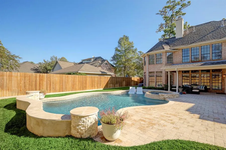 Welcome to your dream home in Northampton Estates! This exquisite two-story residence seamlessly blends elegance with comfort. Enter through the grand foyer to discover a private study with French doors, an ideal space off the entry. The spacious kitchen flows into the family room, creating a dynamic atmosphere for entertaining or remote work. Outside, a covered patio leads to a recently installed pool, hot tub, and fire pit, perfect for gatherings or starlit relaxation. Unseen features include a new roof (2021), A/C unit (2020), carpeting (2021), and two water heaters (2021). The 2-car garage provides vehicle accommodation and additional storage. Enjoy community amenities like trails, a fitness center, and a pool. This home is a perfect blend of luxury, functionality, and community living. Your dream awaitsschedule a viewing to step into a world of comfort and sophistication. Zoned to French Elementary & Hofius Intermediate schools! Home will be sold AS-IS.