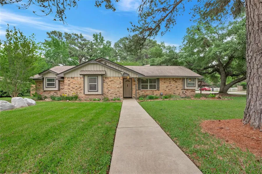 UNRESTRICTED corner property, consisting of two lots, totaling 1.03 acres. This property includes gross living area of both home (1571 sf) and garage apartment (832 sf) totaling 2403 sf. Great location for a business, close to I45 and 99 but feels like you're "out in the country"! Inside this home you will find beautifully updated bathrooms, new double pane windows throughout, plumbing system updated with PEX plumbing '20, solid 3/4" maple hardwood flooring, NEW carpet in the bedrooms. Roof '16. Kitchen doors/drawer fronts replaced w/soft close. Gutters on house/garage '22. New privacy fence '23. Gorgeous wood-burning FP. Outdoor bar/kitchen with lots of colorful lighting and fire pit. Apartment located over the 3-car garage is completely climate controlled with its own HVAC system. Includes a full bath. With a few kitchen modifications, this could be an income producing opportunity. 30 ...