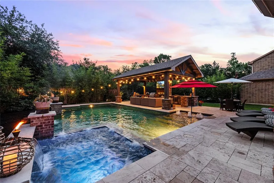 WOW! Welcome home to this AMAZING Woodlands Creekside Creek Beauty with a STUNNING backyard oasis! This 5 bedroom (2 down)/4 bath/3 car garage Highland Home SHINES with the pride of ownership! Beautiful hand scraped wood floors and fresh paint sweep you in! Walking distance from the highly sought after elementary and middle schools! Plantation shutters throughout! No carpet! 8-foot doors! Cozy stone fireplace! Private owners retreat with relaxing views of sparkling pool/spa and manicured landscaping! Great secondary bedrooms and storage! Big kitchen with great counter and cabinet space-recently updated lighting, faucet and hardware. Game room and study nook! Entertain in the resort like backyard-custom extended covered patio with outdoor kitchen, green egg stays, travertine decking, 2 TVS to watch your favorite game! Close to Creekside restaurants, shopping and HEB, neighborhood amenitie...